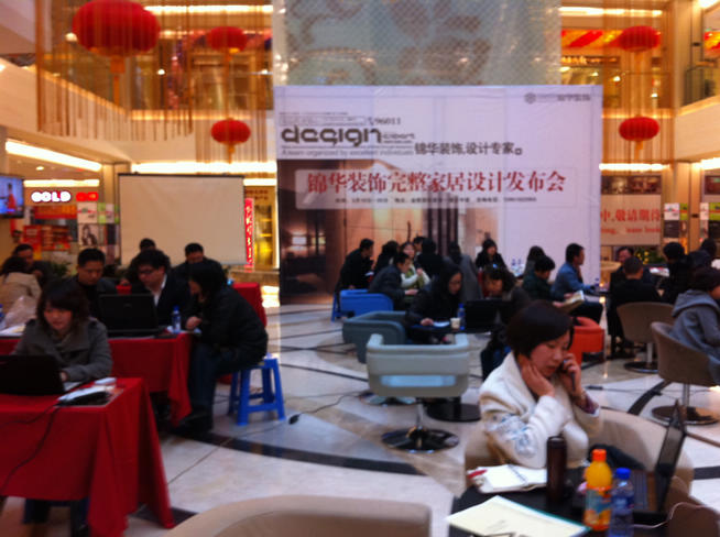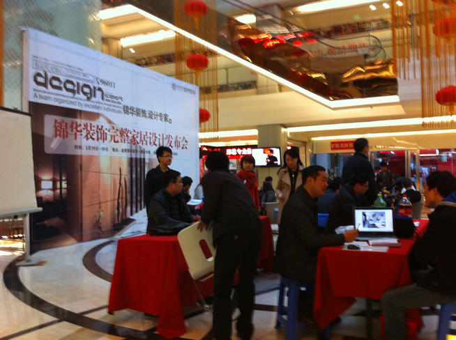 在一樓中央?yún)^(qū)域,近20位全國優(yōu)秀設(shè)計師接待業(yè)主的裝修咨詢;周邊液晶電視,不間斷的播放《堂杰支招》,增加業(yè)主對裝修的認識。兩天的時間,來訪客戶絡(luò)繹不絕。一方面,眾多的城西區(qū)域業(yè)主在錦華找到了符合自己需要的設(shè)計師;另一方面,更多的業(yè)主通過與錦華優(yōu)秀設(shè)計師的溝通,加深了對家裝的認識。