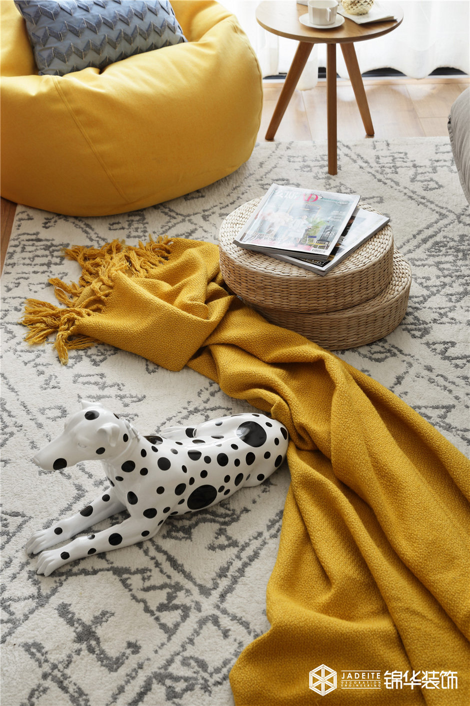 ▲色調(diào)以黃色、灰色、木色為主,溫暖又活潑。布藝、亞麻、木質(zhì)等天然材料的運(yùn)用,又為空間平添了一種慵懶的繾綣!