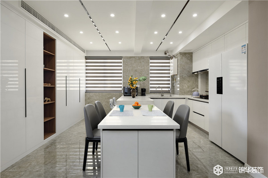 ▲把廚房改造成開放式的,與餐廳結(jié)合一體,這樣同樣的的空間下,可以多出一組收納柜子,更實(shí)用!